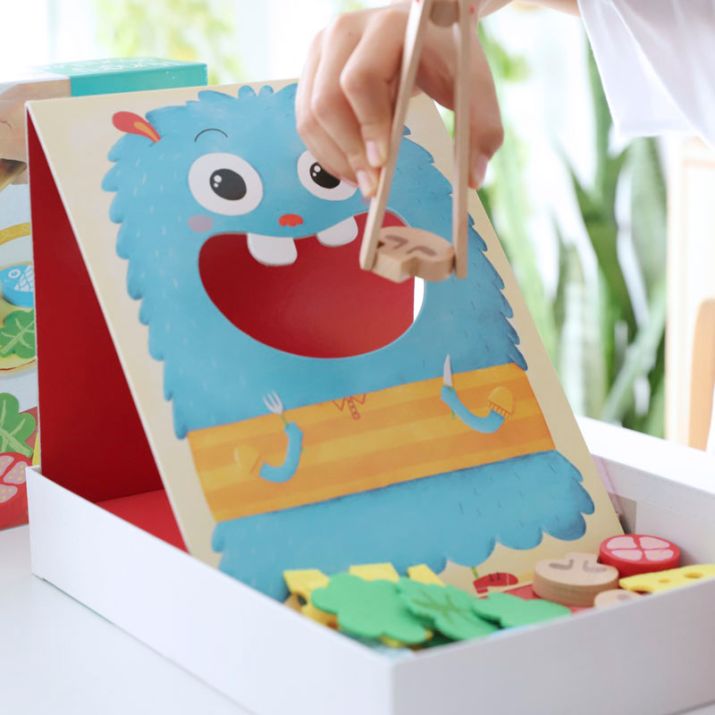 Hungry Monster – edukacinis žaidimas vaikams nuo 3 metų, lavinantis smulkiąją motoriką, koordinaciją ir dėmesį per žaidimą su žnyplėmis.
