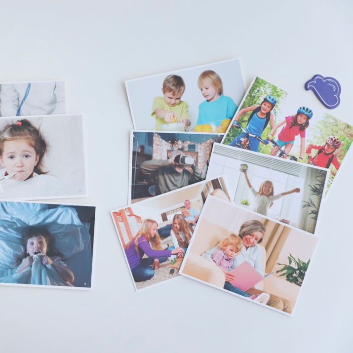 ryškūs, aiškūs paveikslėliai su emocinėmis situacijomis