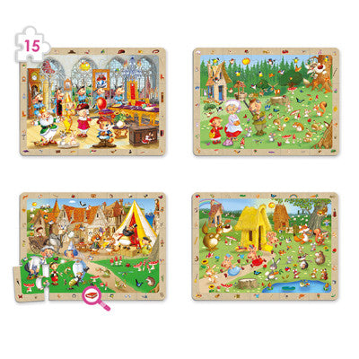 – 4 lankstios dėlionės su iliustracijomis iš klasikinėms pasakoms skirtų istorijų;