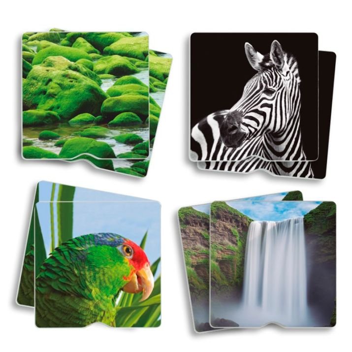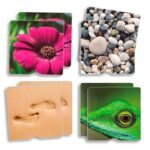 · 34 tvirtos kartoninės kortelės (17 porų) su skirtingomis tekstūromis ir realiomis gamtos nuotraukomis.