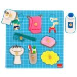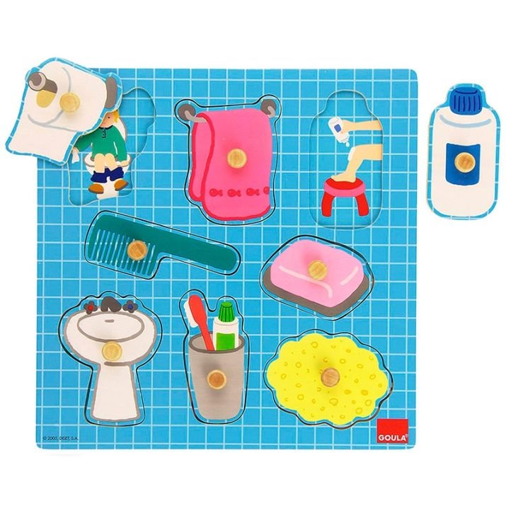 „Medinė įstatoma dėlionė – Vonios kambarys“ – tai lavinamasis žaidimas/skirtukas, padedantis vaikams pažinti kasdienes buities erdves ir objektus, susijusius su vonios kambariu. Sudėliodami dėlionę, vaikai mokosi atpažinti daiktus, suprasti jų paskirtį, lavina orientaciją, smulkiąją motoriką ir kalbinį žodyną.